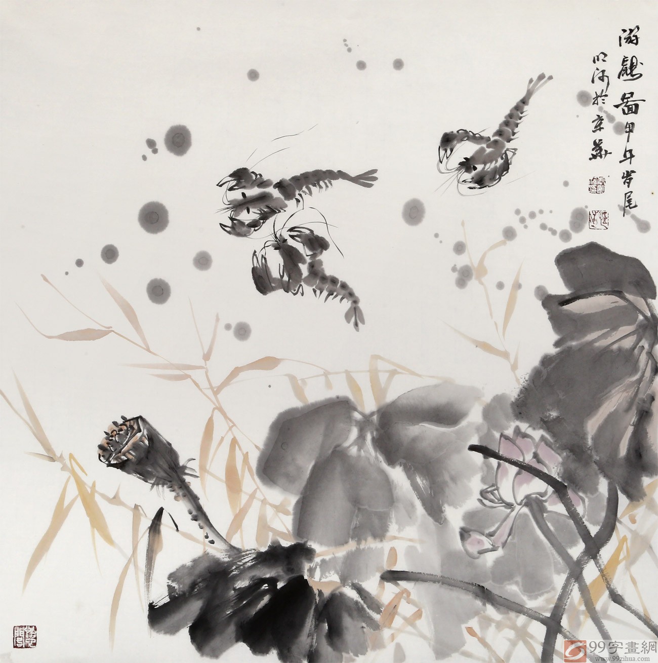 中國濕地畫派創始人之一張明河 四尺斗方《游龍圖》詢價