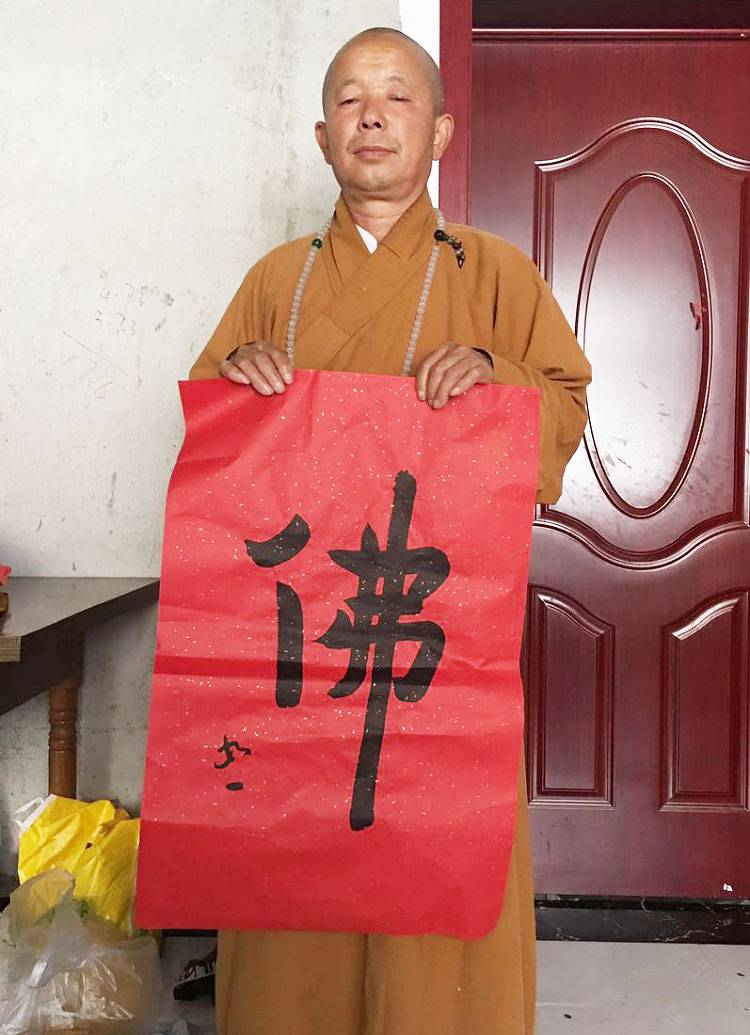釋如一,雅號苦行憎,自喜研習書畫,頗有靈性,尤愛弘一法師書法,心追手摹,少年時皈依其家鄉清涼寺本善老和尚為佛門居士,本善老和尚賜號如一,意愿能如弘一大師之大成。后得名師點化,佛緣具足,萌發出棄世出俗之愿。于2007年9月19日在河北永清縣白塔寺禮上慧下能法師,受具足戒,剃度出家為僧,現居終南山天佛洞。
