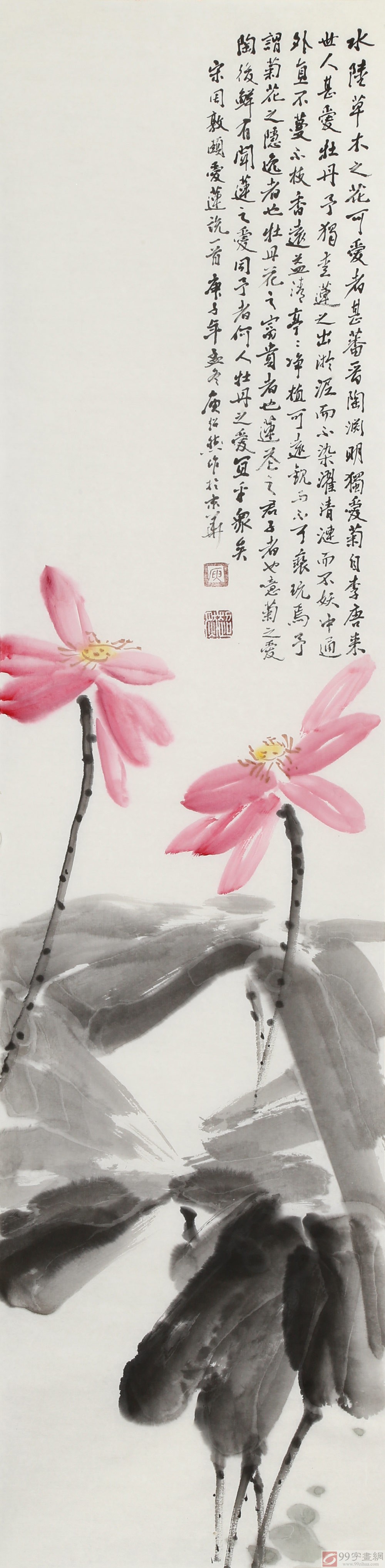 【作品簡評 】 觀庾超然的花鳥畫、人物畫,有清和雋永之氣,而無邪甜庸俗之習(xí),追其原因,即從正格入 ,以雅逸出,于法度中,尋求傳統(tǒng)精華,于超邁中下切實功夫。他的花鳥畫,能給人明朗、清新、簡練 、生機勃勃之感,達到了形神兼?zhèn)洹⑶榫敖蝗诘木辰纭J聦嵣希阝壮坏淖髌分校3J窃姟?、印的結(jié)合,顯示出一種韻致悠然的綜合性美感。