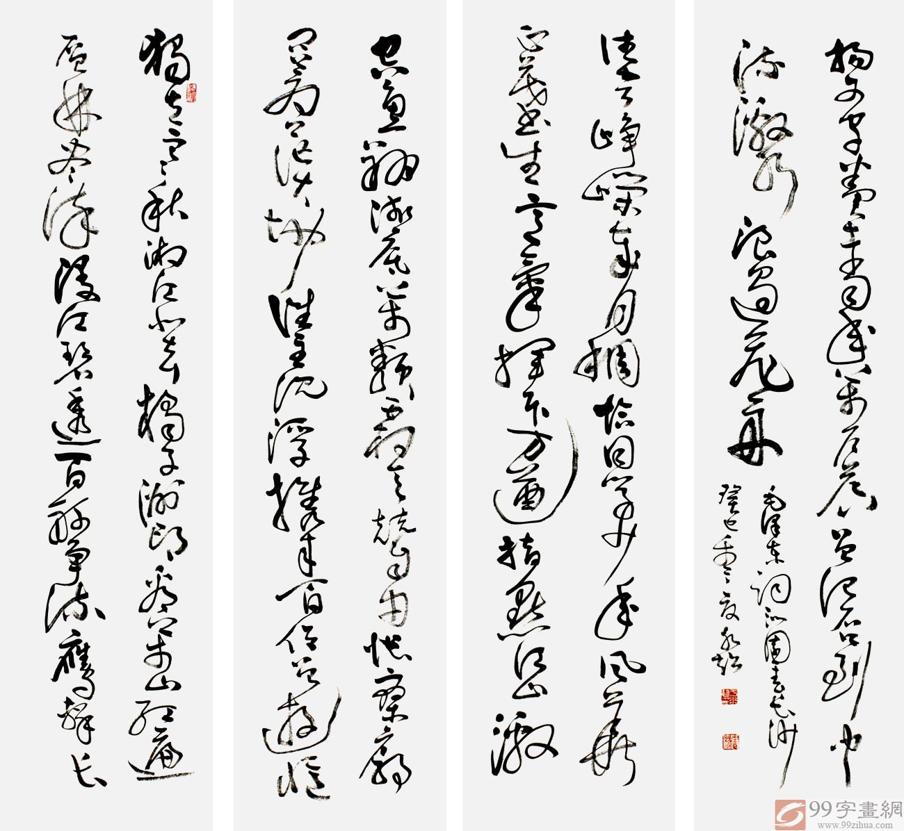 【作品簡(jiǎn)評(píng)】(99字畫網(wǎng)藝術(shù)評(píng)論員曉曼) 河南書協(xié)于水超先生的此幅書法作品《獨(dú)立寒秋》,那奔放如流水般的行草書法,字字相連、環(huán)扣其中,雖用墨有輕有重,但行筆間卻似云霧翻滾蒸騰、抒情豪邁;像一路馳騁的駿馬奔騰咆哮;又如一只翱翔的雄鷹,展翅飛翔,跨越蒼穹;筆畫之間偶以絲帶相連纏繞,于水超先生的此幅行草書法一眼望去疏密相間、氣勢(shì)磅礴、參差有之、左右顧盼、上下呼應(yīng),有一種炊煙裊裊騰云駕霧的視覺效果,讓人觀之頓感驚嘆,是如今辦公室經(jīng)典詩(shī)詞書法!